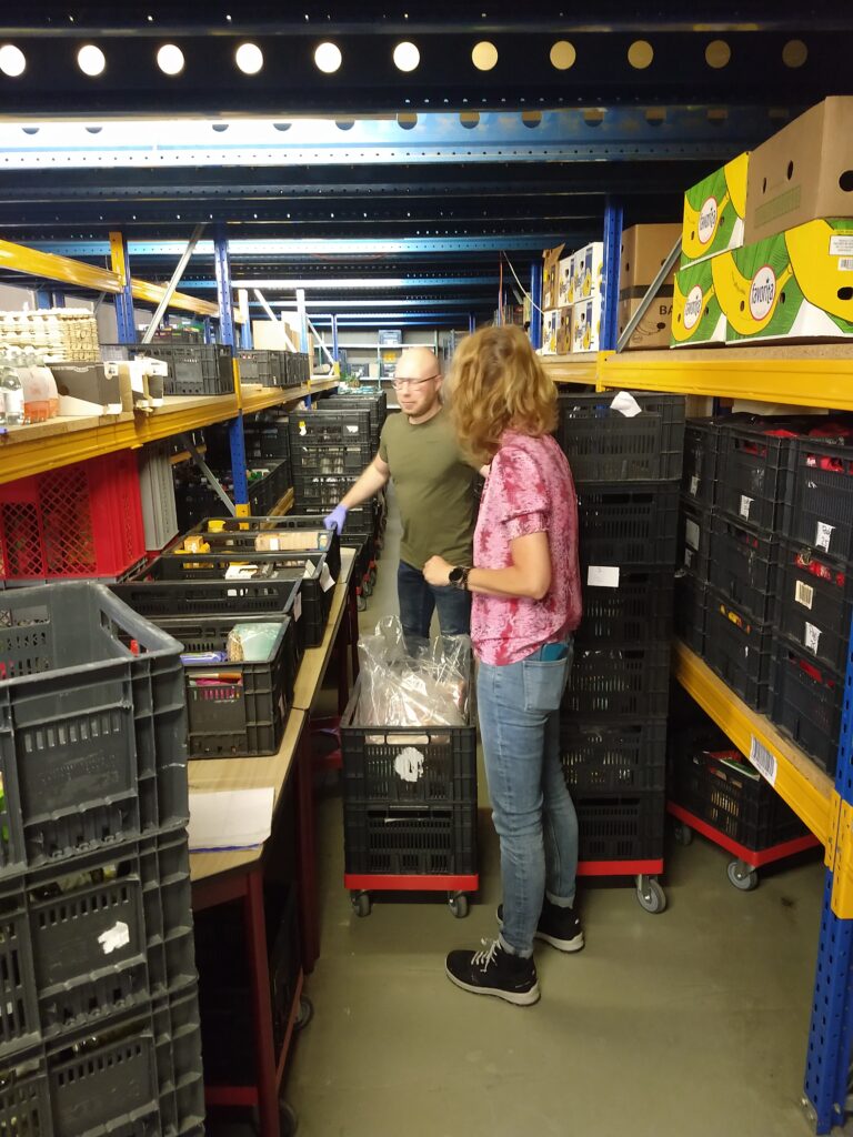 Een belangrijke taak is dan het magazijn bijhouden: levensmiddelen op soort en op THT datum opslaan.
